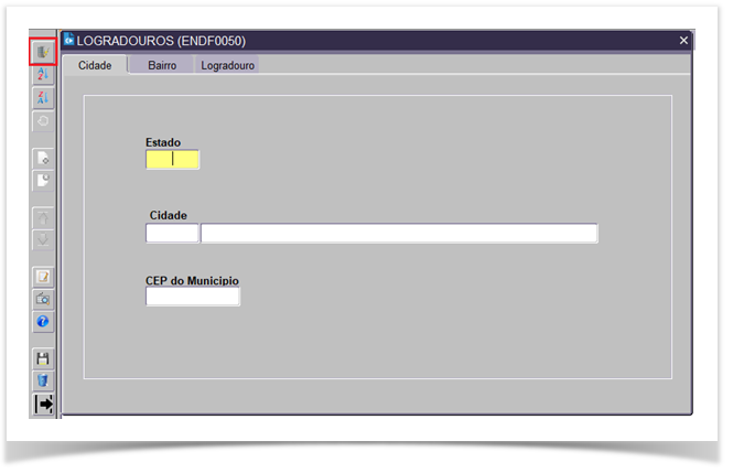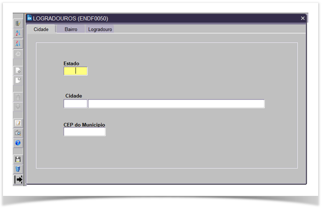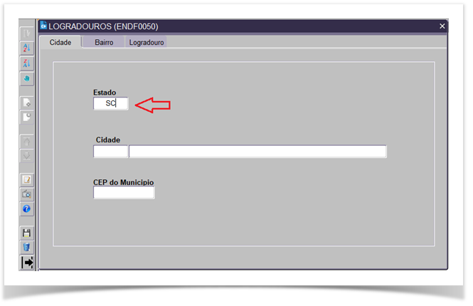 6. Após digitar Estado é preciso pressionar Enter até o campo Cidade para digitar o nome;