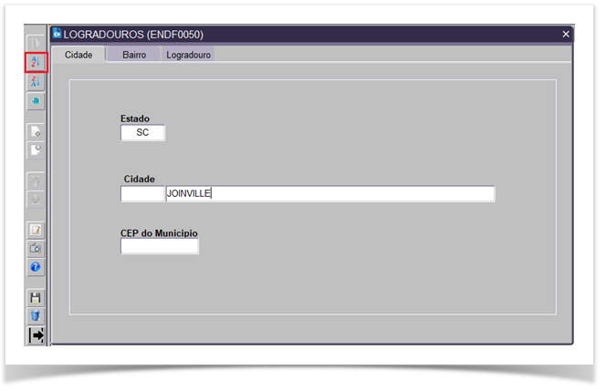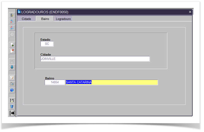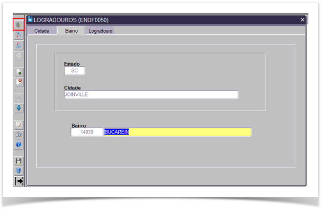 14. Ao informar Bairro é preciso clicar , em seguida irá apresentar preenchido com o código Bairro;