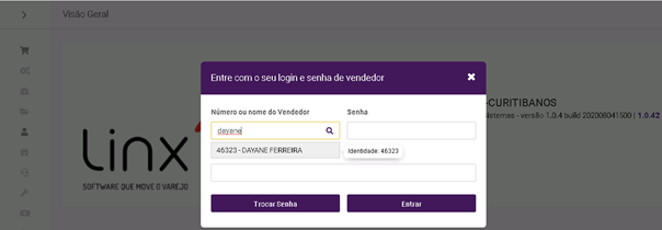 O campo senha poderá ser preenchido: 12345. O vendedor irá realizar a troca da senha VA-UX.