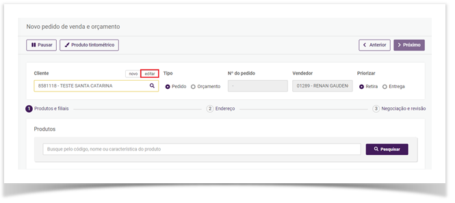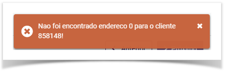 3. Toda vez que o vendedor utilizar tela Pedido Venda e Orçamento para pesquisar um cliente e apresentar a mensagem: Não foi encontrado endereço 0 para o cliente 858148!