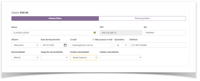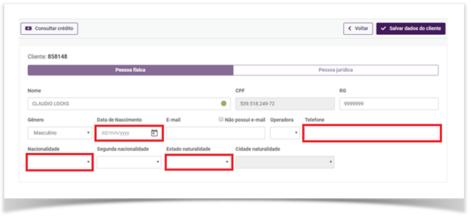 10. Apresentará os dados do cliente, sendo assim será obrigatório o preenchimento dos campos para conseguir finalizar cadastro;