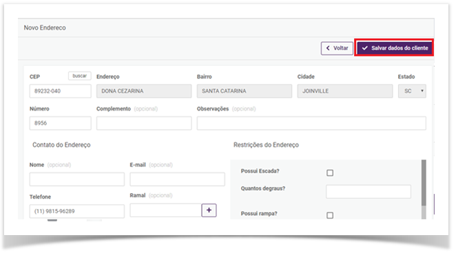13. Após o preenchimento de todos os campos e do endereço, o vendedor irá clicar em ;