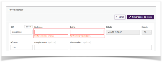 26. Quando se tratar cadastro Cep Cidade, verifique que no VA UX os campos: Endereço e Bairro estão liberados para o vendedor informar o nome da Rua e informar o nome do Bairro;