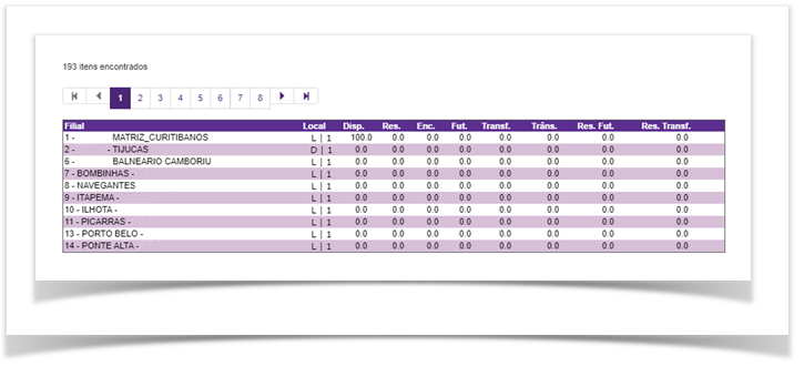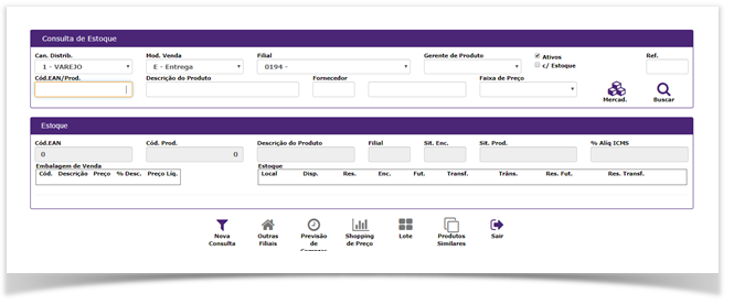 6. Para realizar a consulta do estoque é preciso clicar . Em seguida irá apresentar a tela;