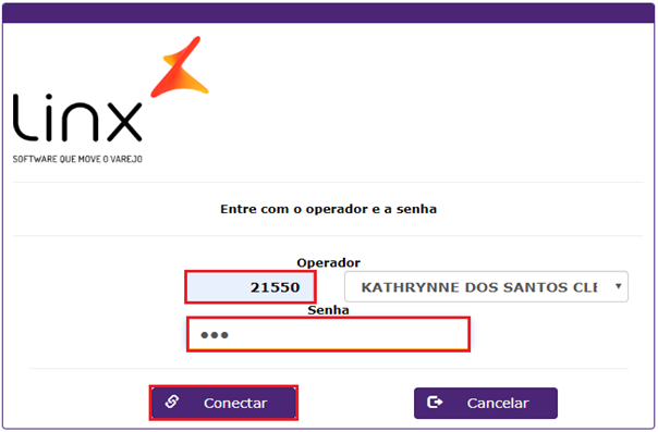 5. Nesse momento é preciso informar Usuário e Senha operador.