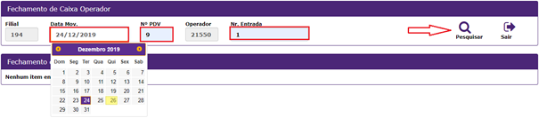 23. Apresentará a tela, onde a supervisora irá informar: Data Mov e N° Pdv em seguida é preciso clicar;