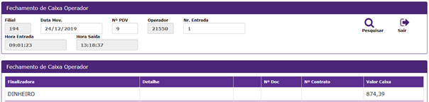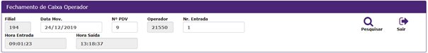 4. Para realizar Fechamento de Caixa Operador, clicar Fechamento Operador. Apresentará a tela.