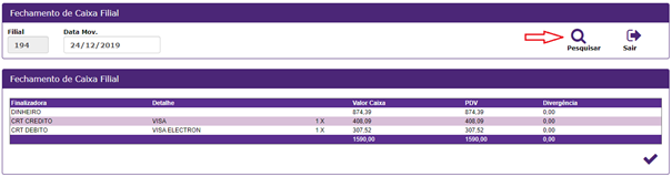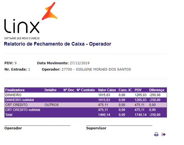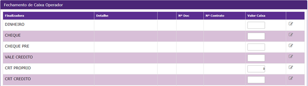 - Processo: Fechamento de Caixa -> 1° Fechamento Operador;