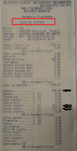 11. Verifique que foi digitado os valores recebidos no Pdv, conforme os valores que apresentam na Saída de Operador;