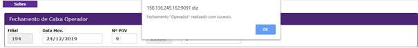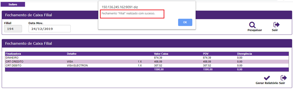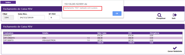 26. Ao clicar apresentou: Fechamento Pdv realizado com sucesso;