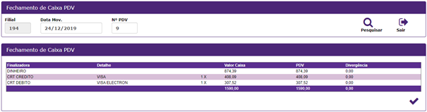 - Fechamento PDV: