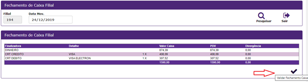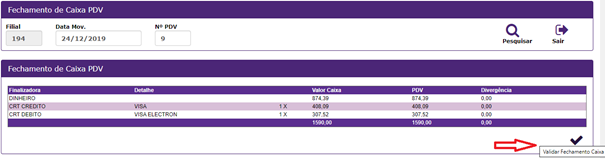 12. Após informar os valores, é preciso clicar Validar Fechamento Caixa;