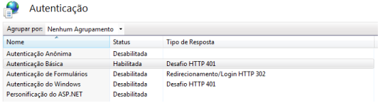 Ao final, as configuraões de Autenticação do IIS deverão estão de acordo com a imagem abaixo: