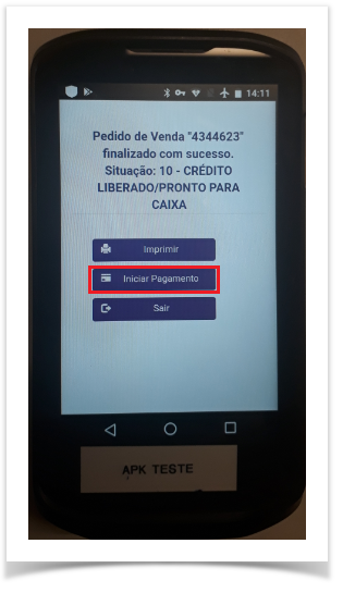 1. Ao finalizar a venda é preciso realizar o pagamento do pedido: Iniciar Pagamento;
