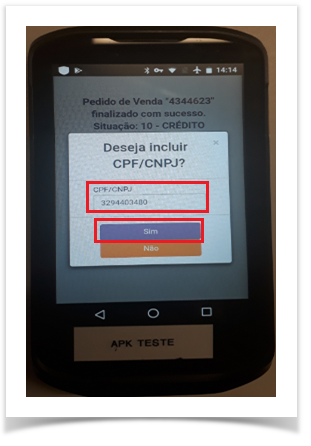 4. Se Sim: Digitar CPF ou CNPJ e clicar Sim;