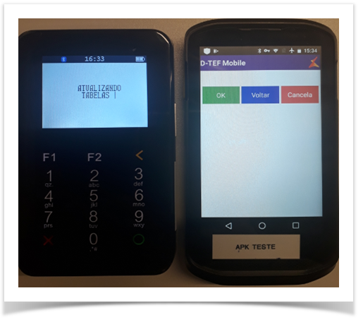 7. Ao selecionar modalidade: Débito, observe que o dispositivo Pin Pad irá atualizar as tabelas, quando se tratar da 1° venda;