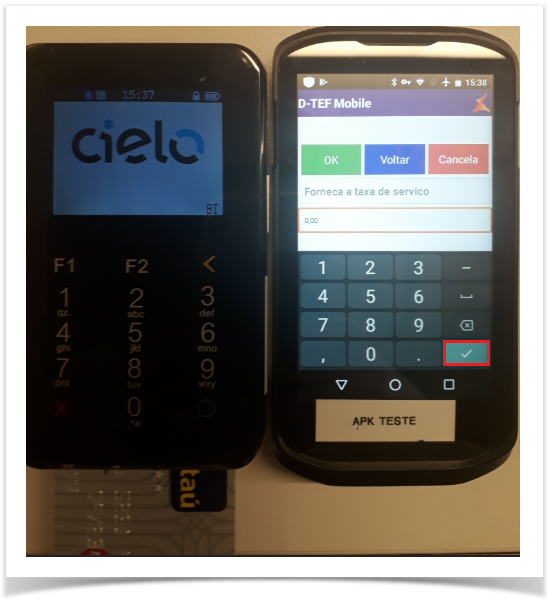 12. Mensagem: Forneça a taxa de serviço, pressionar;