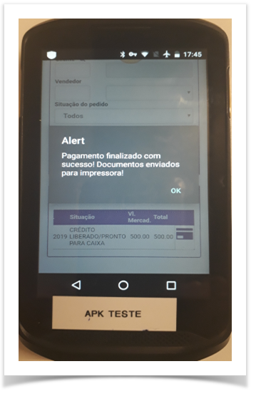 17. Pagamento finalizado com sucesso! Documento enviado para impressora!;