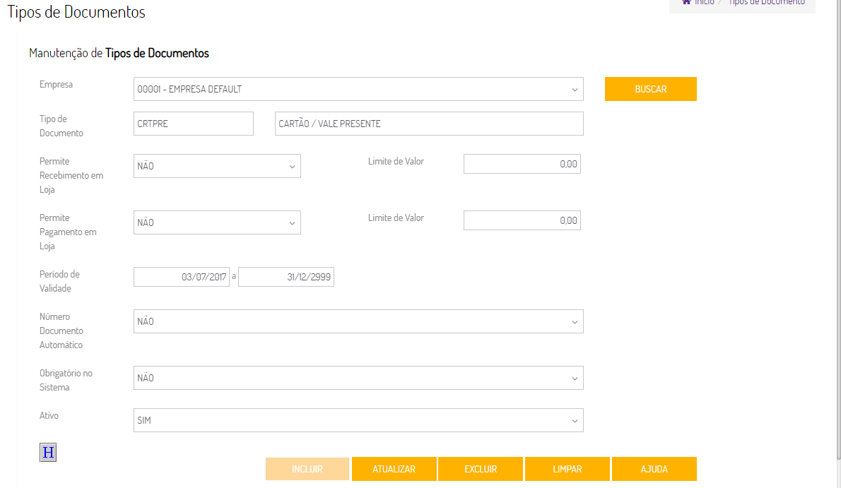 Em Tipos de Documentos, cadastrar um novo tipo: