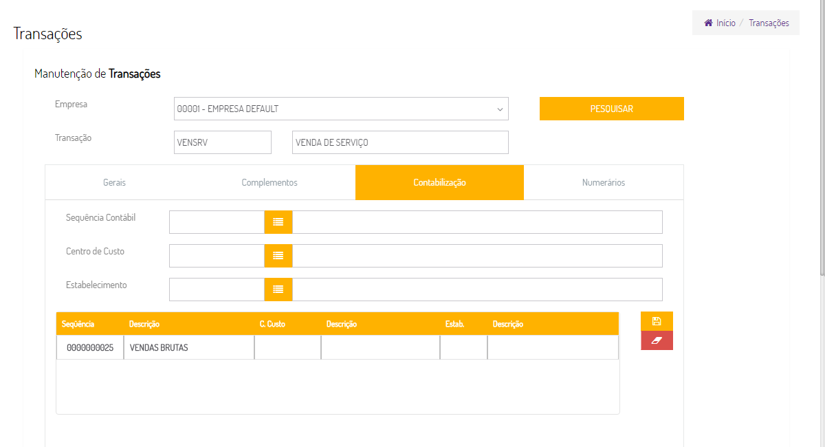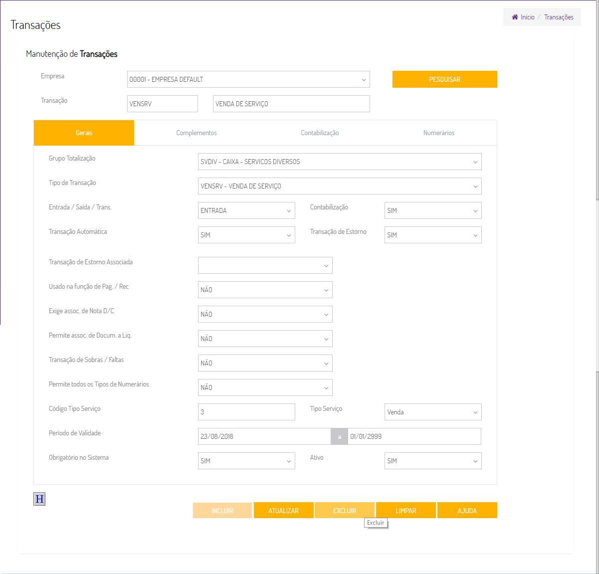 Para a configuração da funcionalidade de Devolução Sem Numerário é necessário cadastrar as transaçõe abaixo, caso não existam: