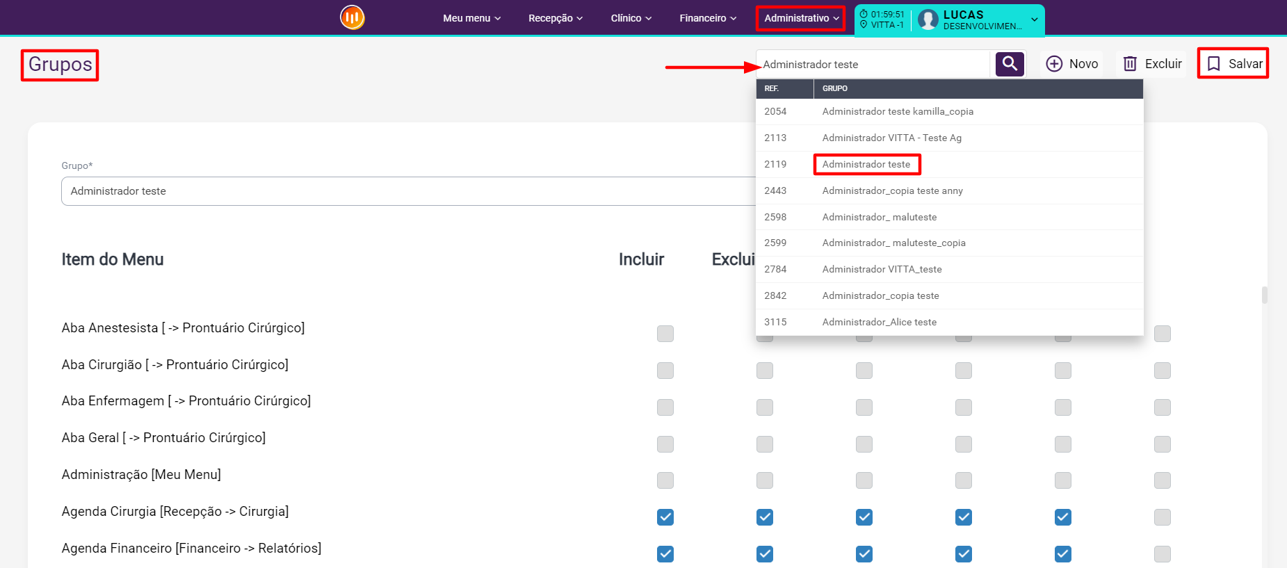 1) Acesse o menu Administrativo →  Cadastro → Grupos.