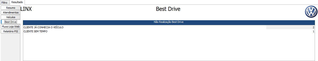Menu | Fluxo de Atendimento > aba Dealer Qualification > sub aba Resumo Geral > aba Resultado > Best Drive |