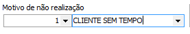Para cadastrar os motivos de não realização de Best Drive acesse o menu Configuração > Cadastros > Motivos e informe o tipo do motivo como Não realização do Best-Drive e certifique-se de que a opção Inativo esteja desmarcada.
