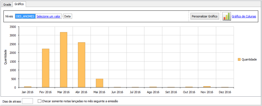 Nesta mesma tela, sub-aba "Gráfico", existe um demonstrativo gráfico da quantidade de notas lançadas com atraso no sistema.