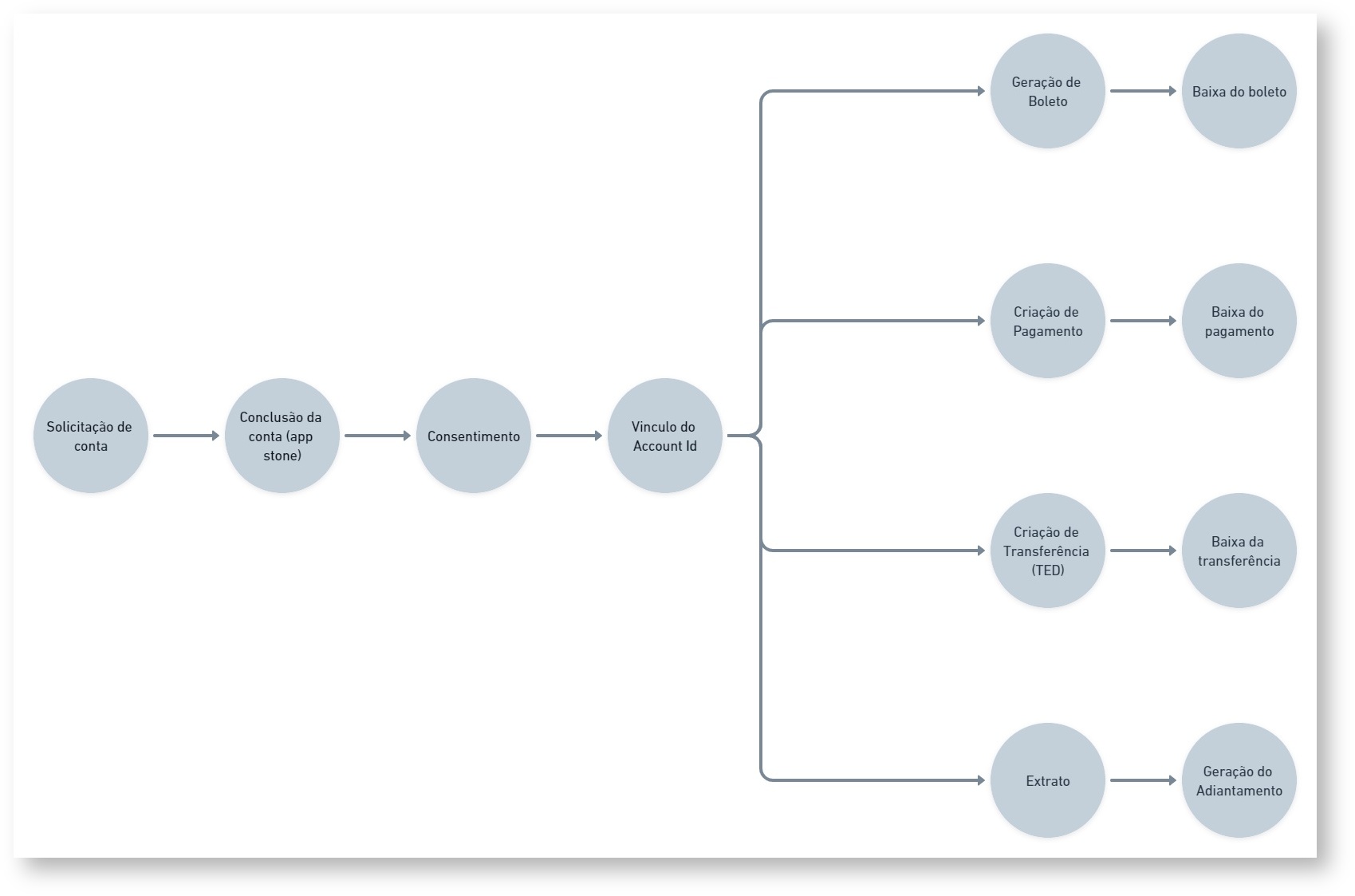 O fluxo para a utilização da integração da Conta Digital Integrada se inicia na solicitação/criação de uma conta.