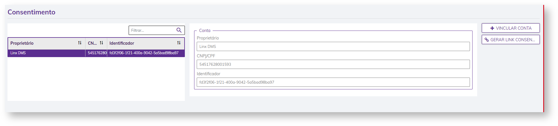 Após isso, para utilizar as funcionalidades de pagamentos e boletos, o usuário deve conceder o consentimento para o Linx DMS utilizar a conta para realizar transações.