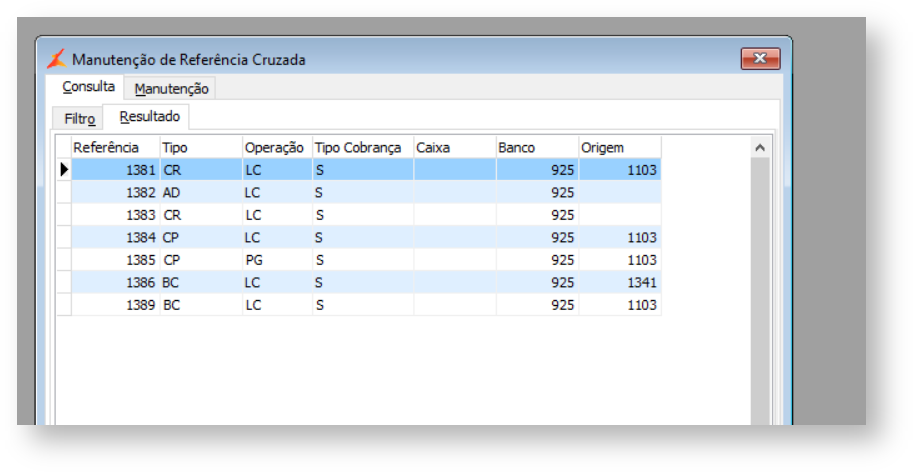 Lembre-se de criar todas as referências necessárias para utilização do novo Banco, para isto acesse Financeiro> Cadastros> Referência Cruzada: