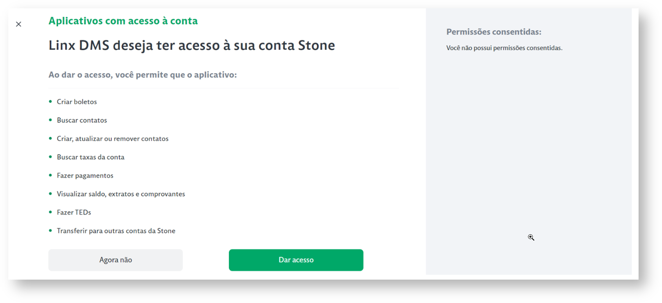 O Consentimento é um conceito fundamental no Stone Banking, pois a partir da realização desse processo, o usuário poderá permitir que o Linx DMS realize transações nesta conta.