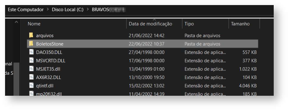 OBS: Para todos os boletos Stone gerados, é criado por padrão no diretório Linx DMS/BRAVOS/Autoshop a pasta BoletosStone: