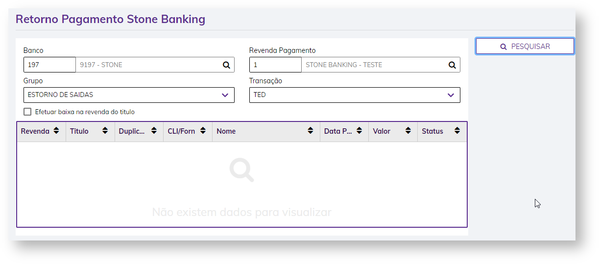 É realizado de forma automática o lançamento bancário de saída do banco Stone e Entrada no banco destino da conta da revenda.