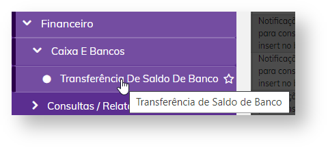 Lançamento no DMS Menu: Caixas e Bancos >Transferência de Saldo de Banco