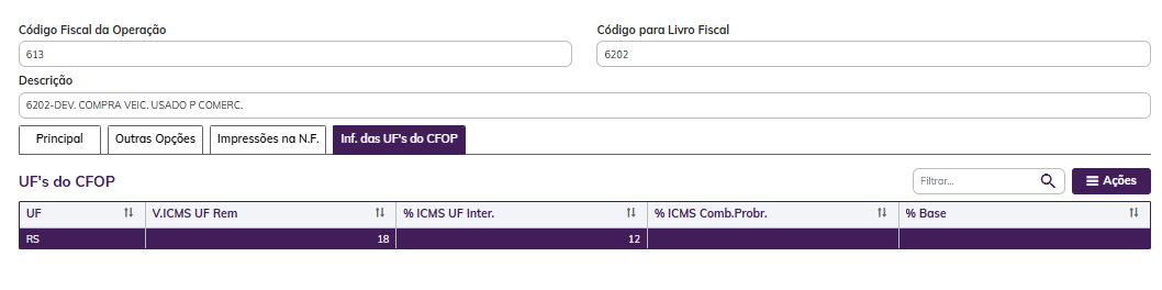 4) Acesse o menu Faturamento > Cadastro > Referencia Código Fiscal da Operação e cadastre a referência cruzada para a operação.