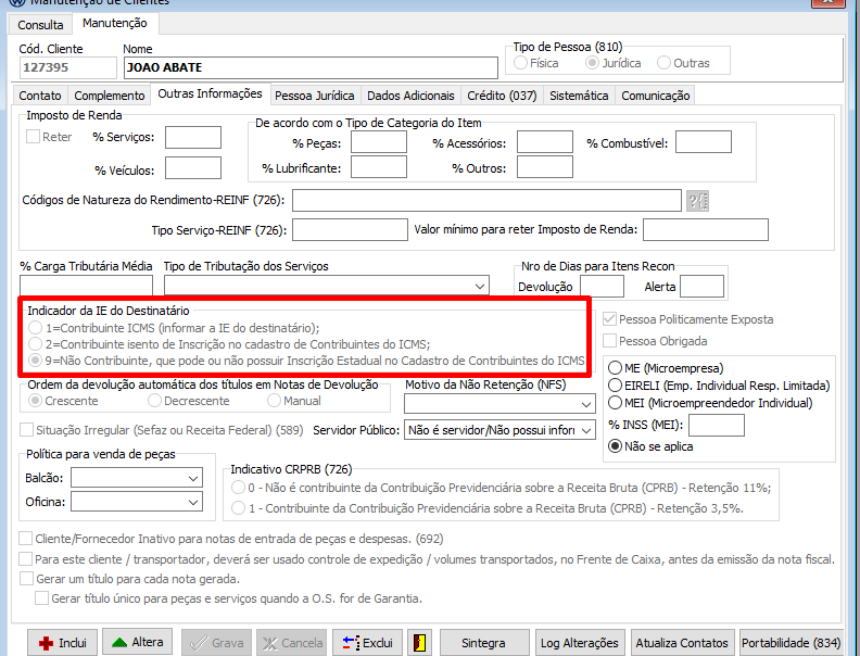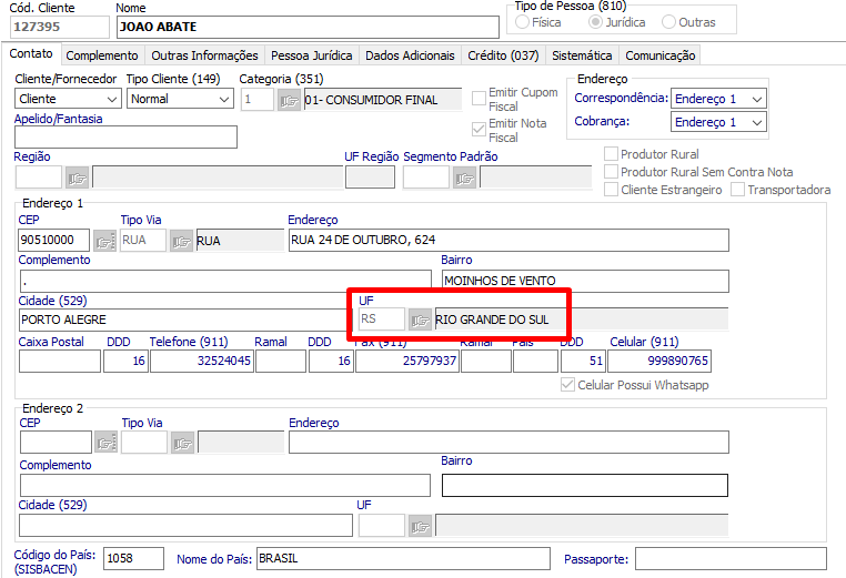 1) Acesse o menu Faturamento > Manutenção Clientes > Cadastro dos clientes e verifique a UF e o IE.