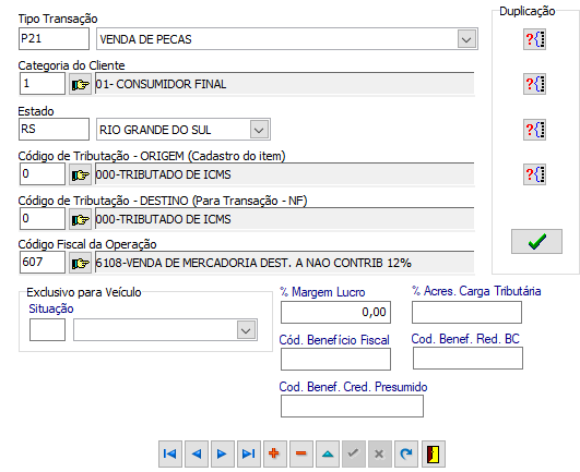 3) Acesse o menu Configuração > Cadastros > Código Fiscal e verifique se as alíquotas e base estão informadas, após isso, verifique se está marcado a flag "Calcular e somar ICMS Retido / Subst. Tribut. no total da nota de Venda Peças / Veículos para fora do estado".