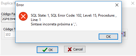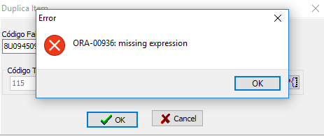 Ao duplicar o cadastro do item apresenta a mensagem de erro: