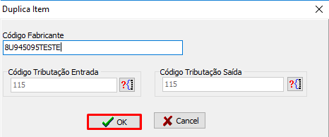 Como corrigir o erro ao duplicar o cadastro do item.