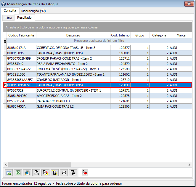 Menu | Peças > Cadastros > Itens |