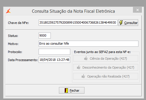Faturamento > Notas Fiscais > Consulta Situação de NFe