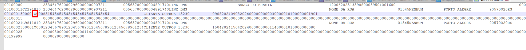 Alteração na geração do arquivo de remessa bancária para o Banco do Brasil.