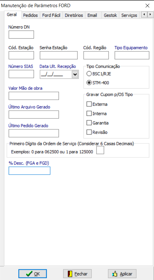 2- Tela Manutenção Parâmetros Ford - GUDB