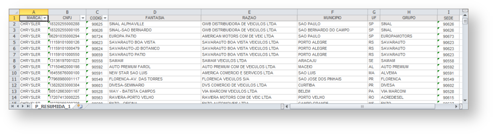Chrysler/Jeep: Fábrica > Chrysler > Peças > PRIM > Importação Planilha Concessionárias