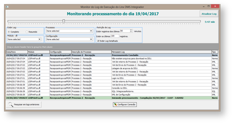 Figura 15: Monitor do Log de Execução do Linx DMS Integrador