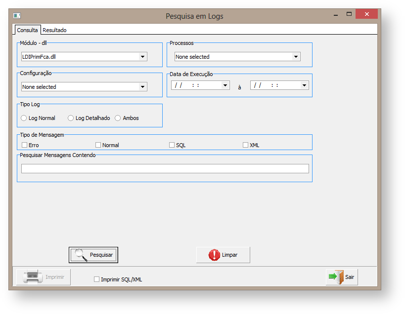 Figura 16: Pesquisa em Logs – Aba Consulta
