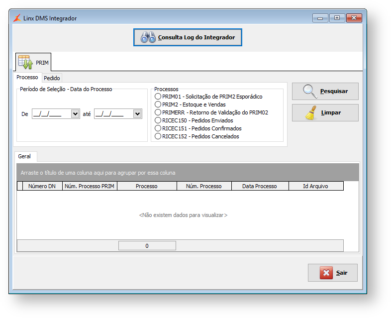 - PRIM01: Dispara automaticamente a geração de um arquivo PRIM2 conforme o intervalo de datas informado no arquivo.