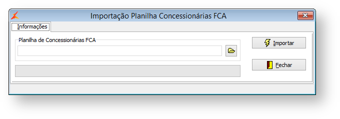 Este programa permite a importação de um arquivo ".csv", contendo as concessionárias ativas da FCA.
