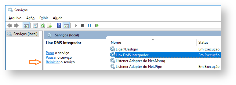 15. Reinicie o serviço do Linx DMS Integrador;
